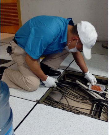 在機房、實驗室等一些放置了精密設(shè)備或儀器的地方,為杜絕潮濕、靜電等因素的影響,一般都在房間內(nèi)設(shè)置了架空層,這一隱蔽的部位為鼠害的藏匿提供了良好的條件,在鼠害的防治工作中為不遺留死角,我們需要采用吸盤將其地面的地板取開,進行檢查。