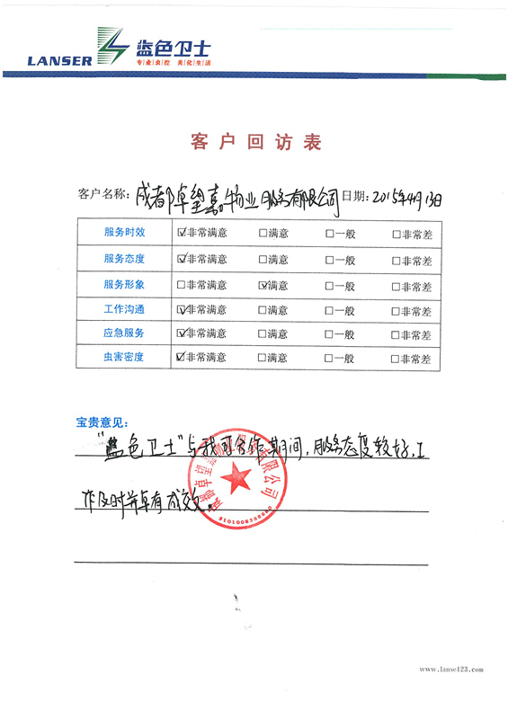 藍(lán)色衛(wèi)士與我司合作期間,服務(wù)態(tài)度較好,工作及時(shí)并卓有成效!