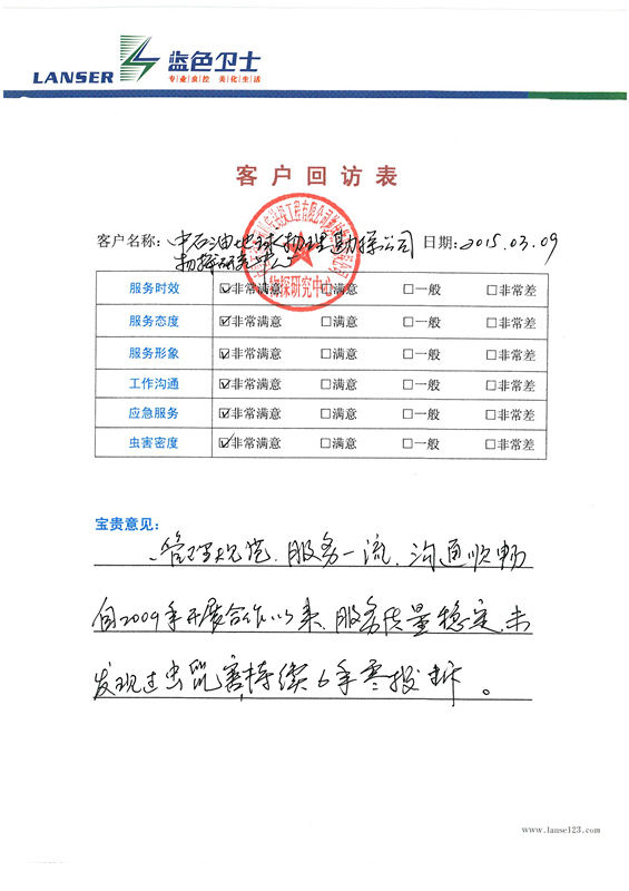管理規范、服務一流、溝通順暢,自2009年開展服務合作以來質量穩定,未發現過鼠蟲害,持續6年零投訴!